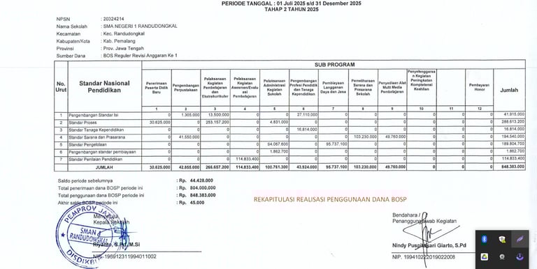 Realisasi Penggunaan dana BOS Reguler tahun 2025 tahap 1.